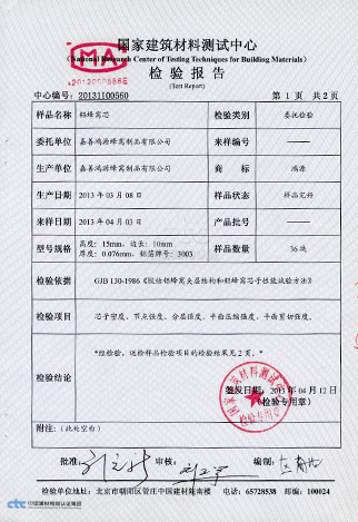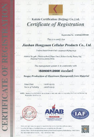 China Zhejiang Jiashan Hongyuan Honeycomb Manufacture Co., Ltd. which is a professional manufacturer of all kinds of Aluminum Honeycomb Core. Our company is based on technology and have introduce advanced Aluminium Honeycomb Core manufacture technique and auto assembly line from both at home and abroad. We will have continued to learning more experience and technology, the exclusive innovating what will are effort to create high quality material for the Aluminum Honeycomb Core. Such as: Shanghai World Expo '2010 China Pavilion honeycomb core materials used by our Company to provide. The annual production capacity of Honeycomb Core is 400,000 M2 per year. Our product is widely used in the construction both inside and outside of decoration, cleaning room, MU trains hardware industry and so on.